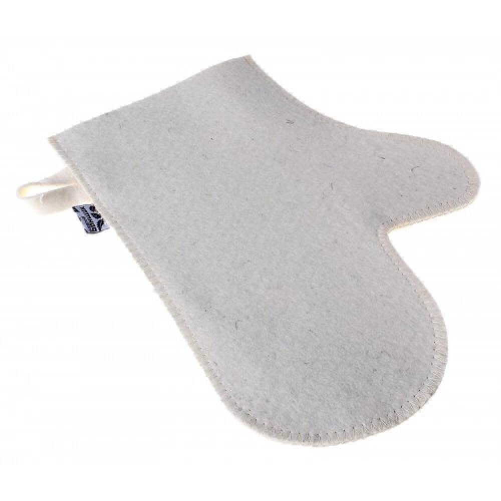 Рукавица банная универсальная войлок белая Б431