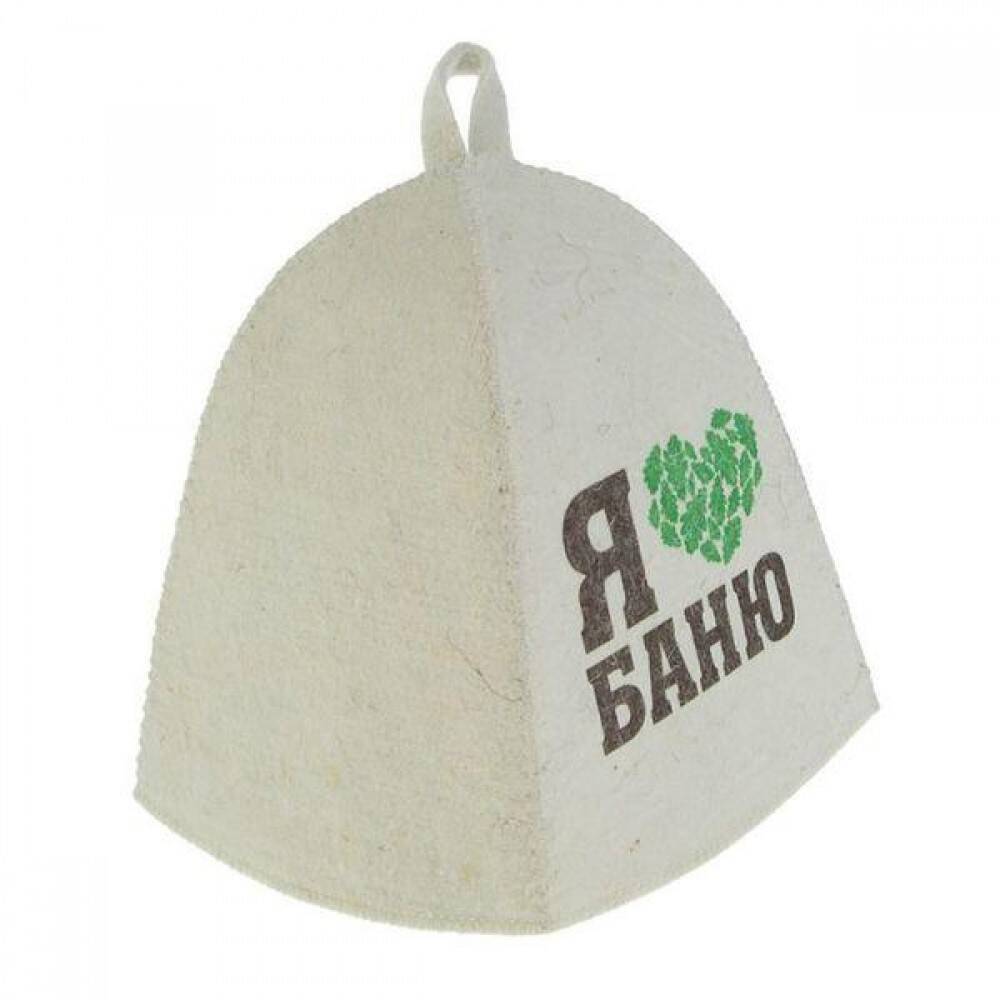 Шапка банная принт "Я люблю баню" войлок белый Б-40273
